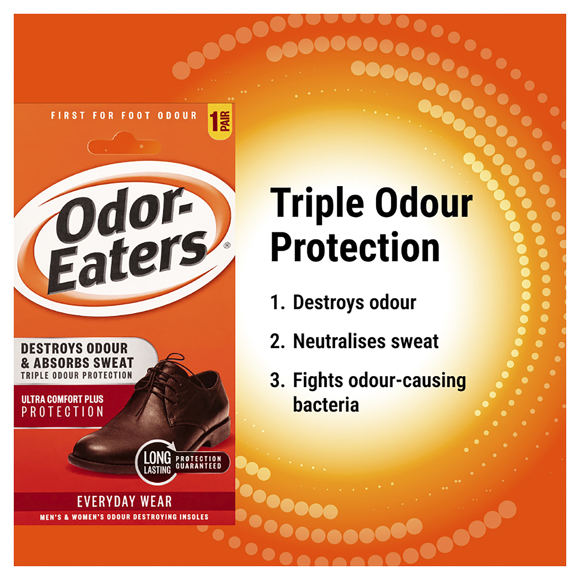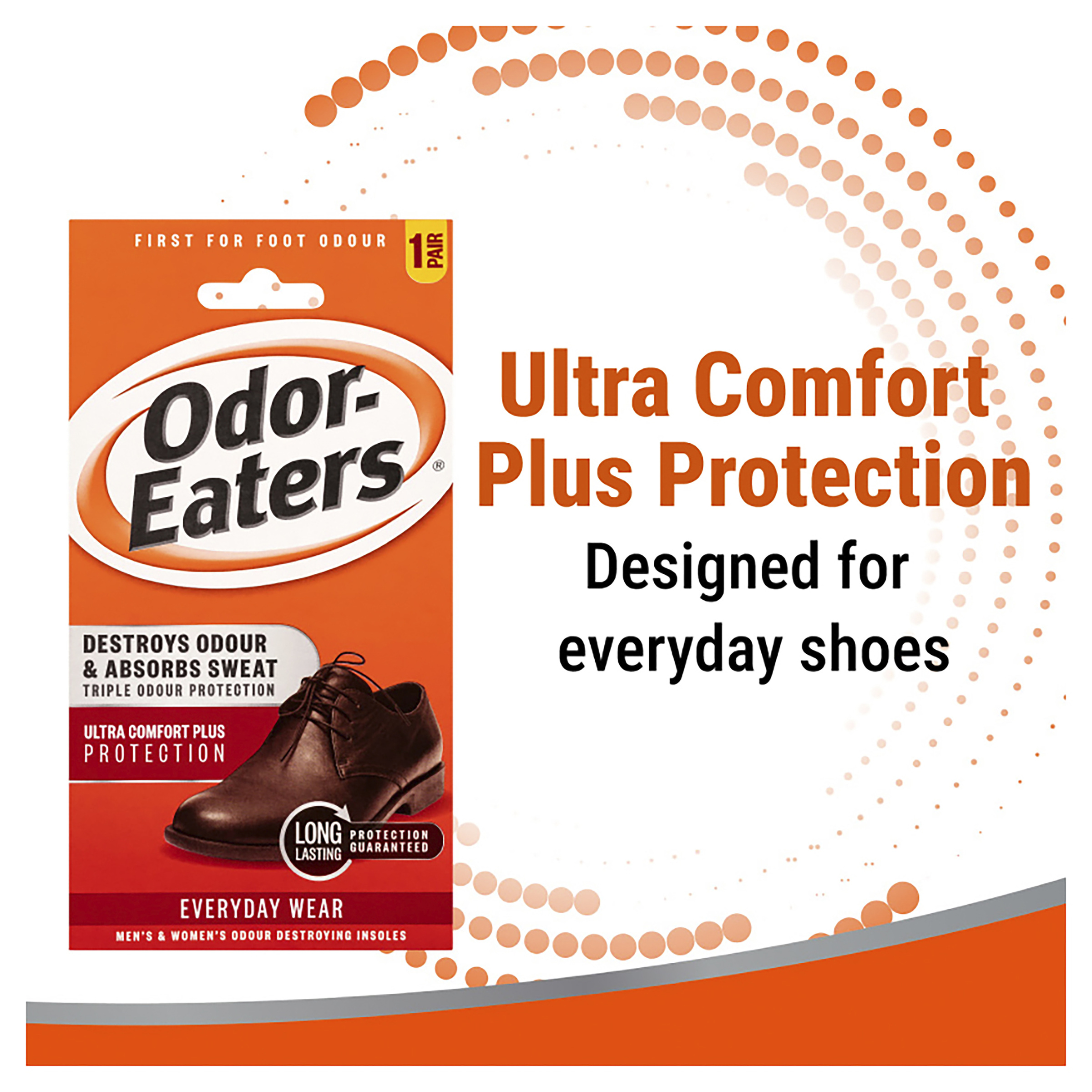 √ For maximum protection, use with Odor-Eaters odour-destroying insoles.